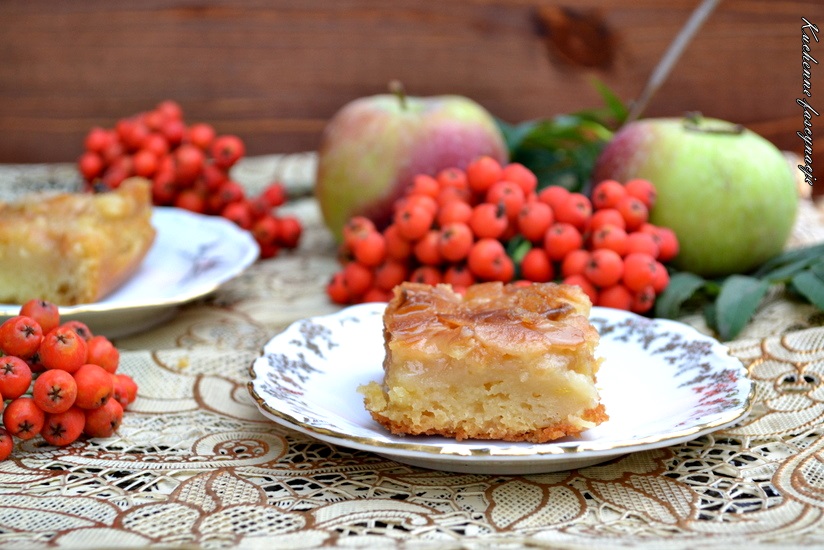 Powiem szczerze, że to ciasto o wielu smakach. Pierwszego dnia po upieczeniu pomyślałam o nim klapa chociaż pachniało obezwładniająco. Po przekrojeniu było zbyt nasiąknięte tzw. migdałową skorupką ale to chyba mój błąd bo zapomniałam włożyć je pod koniec na wyższy poziom. Poza tym wydawało mi się za słodkie aż mdłe z tej słodkości. Ale przyszli goście, ciasto podałam bo najgorzej nie wyglądało i ku mojemu zaskoczeniu znikało w tempie ekspresowym a najbardziej smakowało mężczyznom. Tak to oni zjedli je praktycznie w całości i wychwalali. Drugiego dnia ciasto już nie było nasiąknięte i smakowało dużo lepiej. Nie było już takie słodkie dla mnie bo mój mąż stwierdził, że wcale nie jest mocno słodkie. Na pewno będą tu pasowały kwaśne owoce ale z jabłkami też smacznie było. Ogromną zaletą tego ciasta jest brak jego wyrabiania a wyrasta przez całą noc więc rano możemy wrzucić do piekarnika i rozkoszować się ciepłym ciastem do kawy w chłodny jesienny poranek 🙂 Przepis z bloga Green morning.