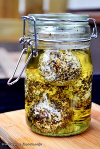 Kuleczki delikatnie obtaczamy w wybranych przyprawach, przekładamy do słoika. Zalewamy oliwą, zakręcamy, pozostawiamy na 48 godzin. Po tym czasie można spożywać. Przechowujemy w lodówce.