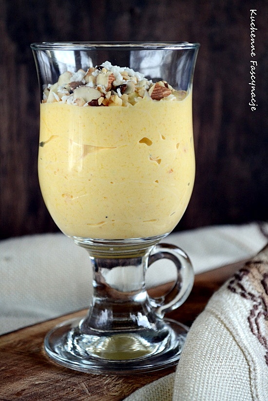 Przepyszne lassi dyniowe, które rewelacyjnie sprawdzi się na śniadanie, lunch czy przekąskę w ciągu dnia. Dzięki temu, że użyłam jogurtu kokosowego nie musiałam niczym dodatkowo dosładzać. Nie ma tu intensywnego smaku dyni ani kokosa ( dla tych, którzy nie lubią intensywnego smaku dyni ten deser na pewno zaskoczy pozytywnie ) ale za to na pierwszy plan wysuwają się korzenne przyprawy. Przepis z bloga Co do jedzenia.