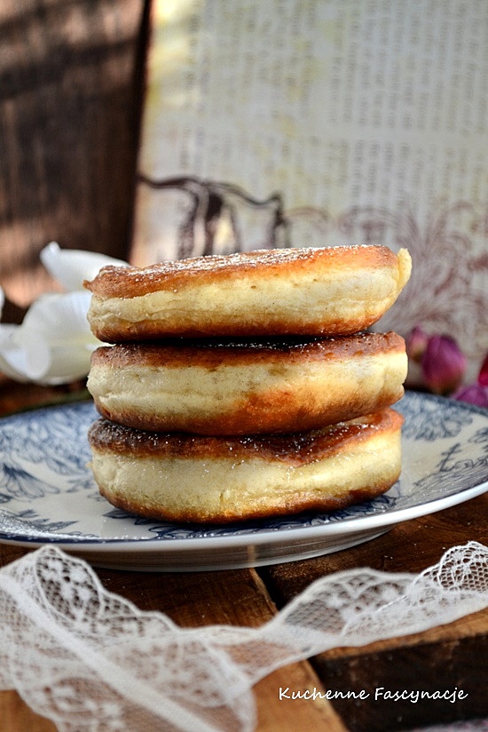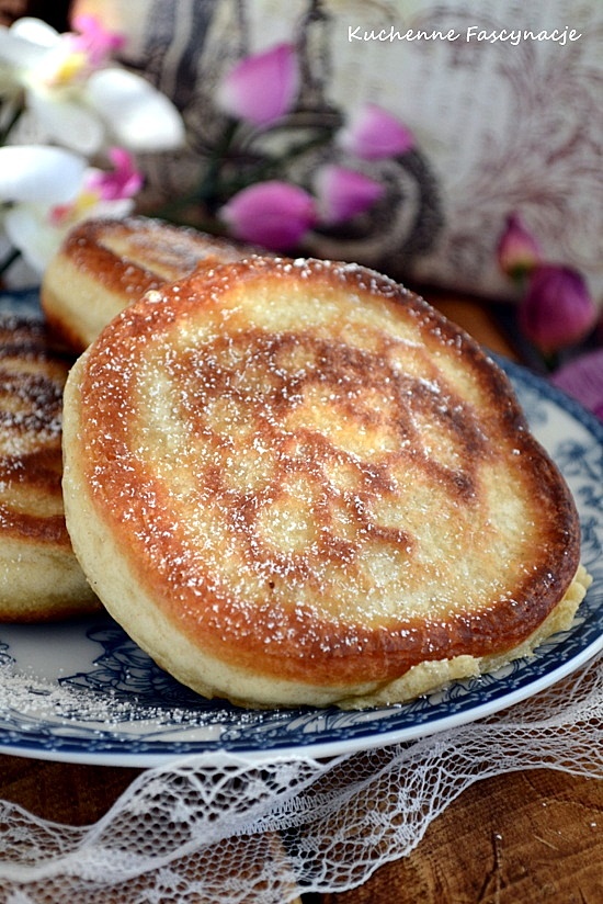 Konkretne placuszki przypominające swoim wyglądem racuchy. Puszyste, wysokie, sycące. Przepis z bloga Smakołyki Asi.