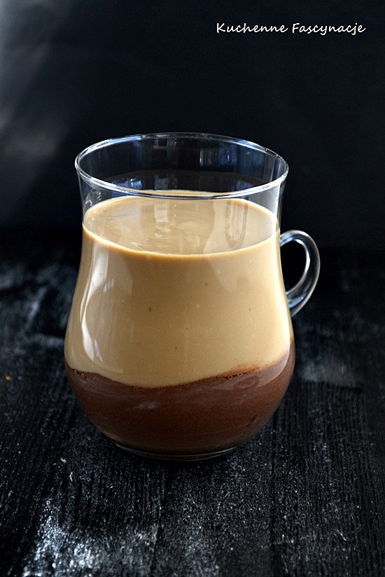 W drugiej misce mieszamy : 10 łyżek jogurtu, 2 łyżeczki kawy Inki i 2 łyżeczki miodu. Jasną masę wykładamy na kakaową.