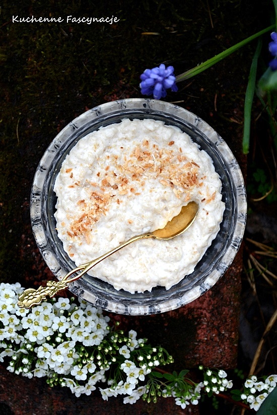 Kremowa, kokosowa ale ta owsianka może mieć nie jeden wymiar smakowy w zależności od dodatków. Owoce, orzechy, prażone wiórki kokosowe co kto lubi. Nie za słodka. Przynajmniej w moim przypadku. Jeśli okaże się za mało słodka spokojnie można polać miodem, syropem klonowym czy dodać słodkie owoce. Przepis z bloga Kuchnia Łuksza.