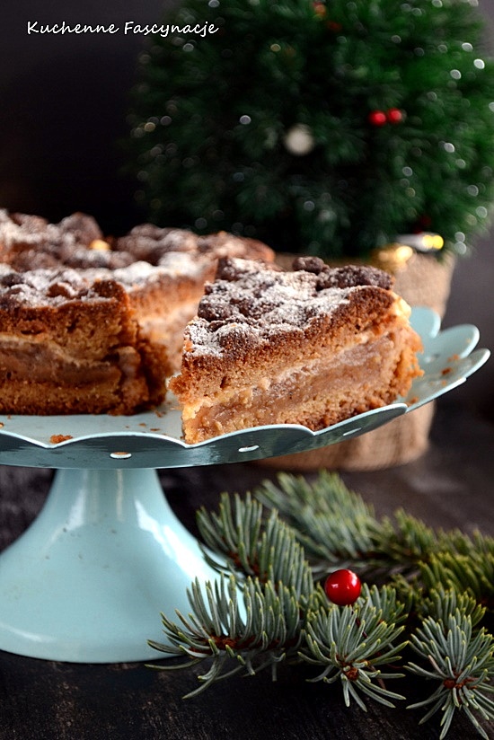 Szarlotka w bardziej Świątecznym wydaniu jednak smak pierników jest na tyle delikatny, że nie przyćmiewa smaku jabłek. Idealnie słodka. W mojej wersji część składników zostało zamienione na zdrowsze. Przepis z bloga Raj dla podniebienia.