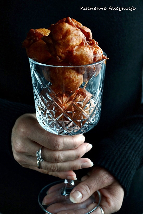 Po tym czasie porcje ciasta wkładamy na głęboki rozgrzany olej i smażymy z obu stron na złoty kolor. Ciasto najłatwiej wykładać za pomocą dużej łyżki i małej łyżeczki. Po usmażeniu można dodatkowo obtoczyć w cukrze lub posypać cukrem pudrem.