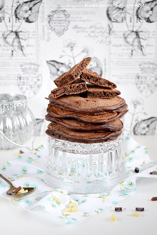 Mocno czekoladowe, puszyste placuszki. Dzieciaki zjadają je w mgnieniu oka ale dorośli też nie pogardzą. Szybkie w przygotowaniu. Przepis z bloga Moje wypieki .