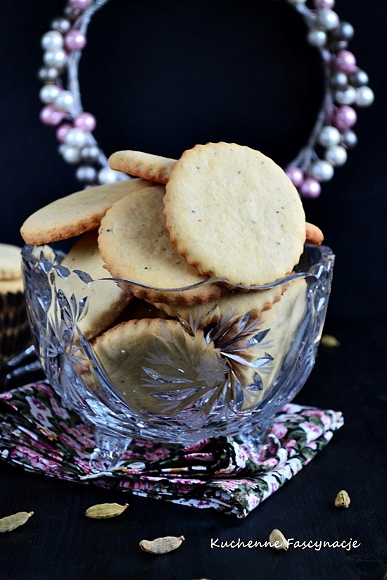 Pyszne kruche, maślane ciastka z kardamonem. Nie dodajemy za dużo cukru dzięki czemu ciastka nie są przesadnie słodkie. Kolejna zaleta jest taka, że ciasta nie trzeba chłodzić przed wycinaniem ciastek dzięki czemu w krótkim czasie możemy cieszyć się gotowymi wypiekami. Przepis z bloga Delicious place.