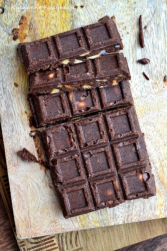Masę przekładamy do 2 foremek na czekoladę lub do formy czy pojemnika o wymiarach 20 x 10 cm wyłożonym papierem do pieczenia. Wstawiamy do lodówki do momentu aż stwardnieje. Najlepiej na całą noc.