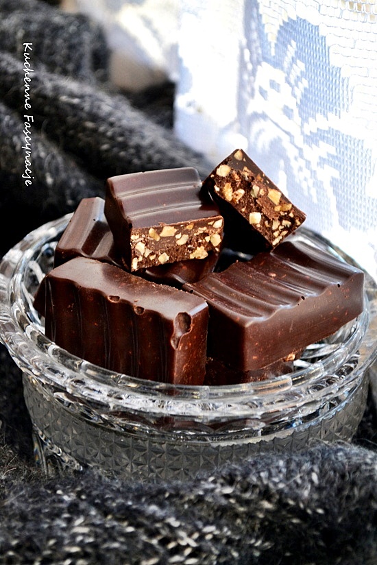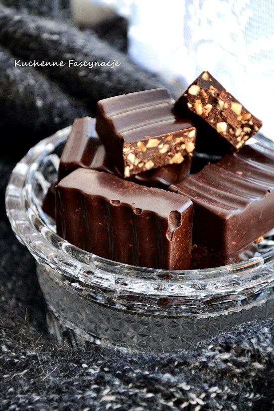 To połączenie czekolady, masła orzechowego oraz pokruszonych orzechów. Nie przypominają w smaku znanych cukierków ale są równie bardzo smaczne i dużo zdrowsze niż słodycze sklepowe. Przepis Ona ciągle gotuje .