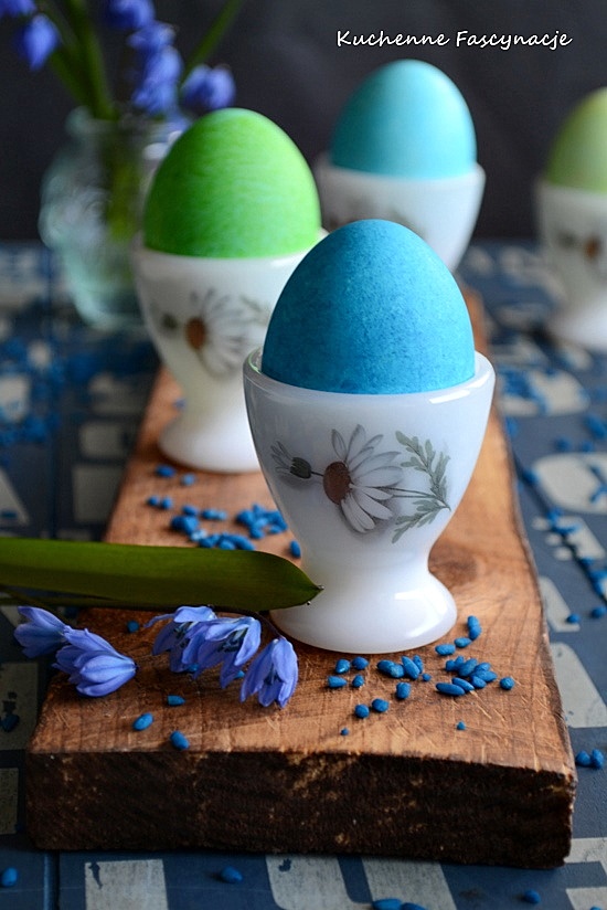W zeszłym roku postanowiliśmy wypróbować nową metodę farbowania jajek jakie krążą po internecie. Padło na ryż i barwniki spożywcze. I tak jak wyglądało na łatwe i szybkie takie się też okazało. Intensywność kolorów zależy od ilości barwnika. A im więcej obtaczacie po jednorazowym dodaniu barwnika to na każdym następnym jajku kolor jest jaśniejszy. Jajka wyglądają jakby były pomalowane na jednolity kolor i ponakrapiane malutkimi, jasnymi kropeczkami. Nie wyszły tak efektowne jak te u Marleny na Instagramie ale i tak bardzo nam się podobają. Super zabawa dla dzieciaków.