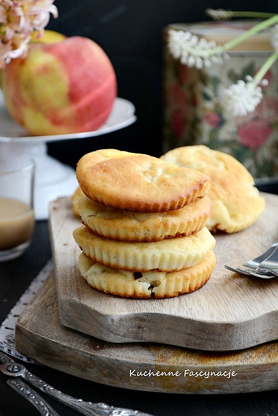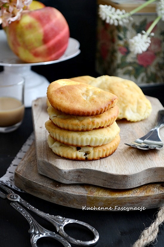 Zdrowe szarlotki na dwa kęsy. Bez cukru, zwykłej mąki. Piekłam je już kilka razy. Próbowałam przepis zmodyfikować ale ostatecznie pozostałam tylko przy zamianie mąki. Na mące ryżowej smakują mi najbardziej. Przypominają małe biszkopciki z jabłkami. Problem był taki, że mocno rozlewały się na blasze i były cienkie. Dlatego postanowiłam je upiec w szerszych papilotkach takich jakie wykorzystuje się do pieczenia bułeczek drożdżowych. Przepis Ona ciągle gotuje.
