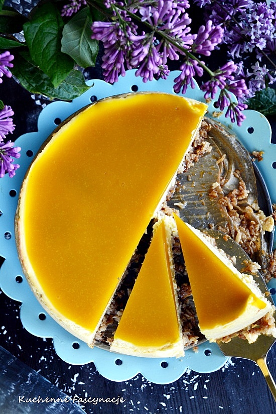 Jaja ubijamy z cukrami na jasną, puszystą masę. Następnie dodajemy cienką stróżką olej oraz mleko cały czas miksując. Nie przerywając ucierania dodajemy łyżka po łyżce ser. Na koniec wsypujemy budynie, szczyptę soli oraz mleko w proszku przesiane przez sitko. Miksujemy aż masa będzie jednolita.