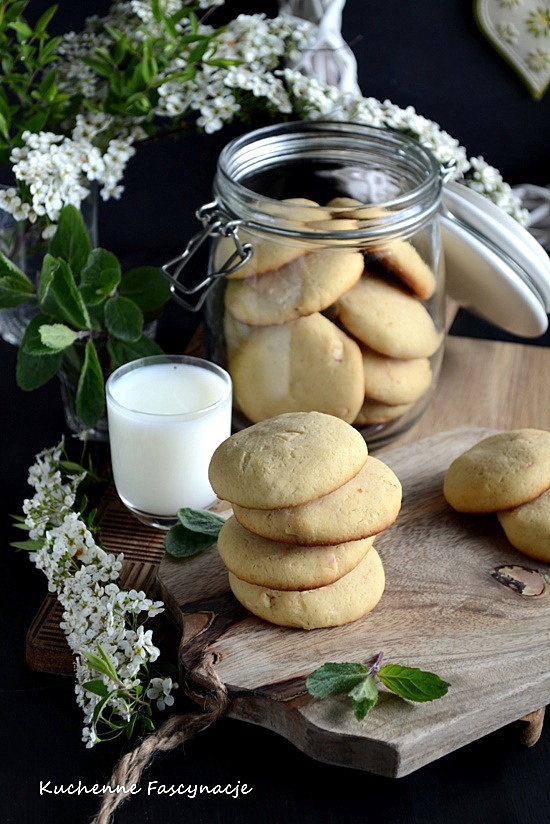 Wyglądają jak małe biszkopty i w zasadzie trochę je przypominają w swojej strukturze. W środku miękkie i puszyste z delikatnie kruchą skórką. O subtelnym smaku mleka w proszku. Na pierwszy plan jednak wysuwa się smak białej czekolady. Przepis z bloga Moje Wypieki .