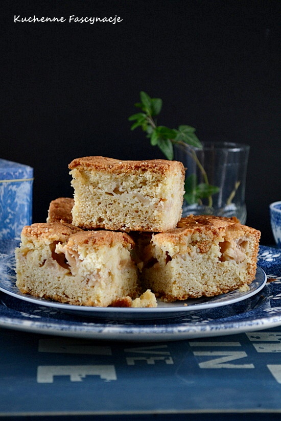 Schłodzone ciasto wyciągamy z lodówki i dzielimy na 2 równe połowy. Jedną część wykładamy równomiernie na dnie tortownicy o średnicy ok 26 cm wcześniej wyłożonej papierem do pieczenia lub wysmarowanej tłuszczem. Na spodzie układamy podduszone wcześniej jabłka a na wierzch ścieramy na tarce lub kruszymy w palcach drugą część kruchego ciasta. Na wierzch można posypać płatki migdałów oraz zmiksowany na puder ksylitol.