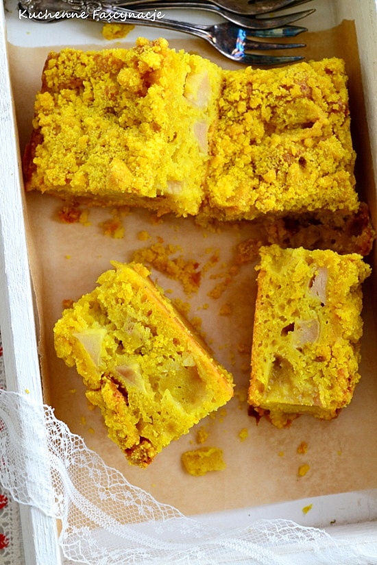 Lubię testować niecodzienne przepisy. Jabłecznik z kurkumą bardzo mnie zaciekawił i postanowiłam go przetestować. Okazało się, że jest bardzo, bardzo smaczny. Puszysty, wilgotny, napakowany jabłkami z cudowną chrupiącą kruszonką o przepięknym bursztynowym kolorze. Kurkuma jest czasami minimalnie wyczuwalna ale to zależy na jaki kęs trafimy choć gdybym nie wiedziała jaki tajemniczy składnik się tam znajduje nie zgadłabym, że to kurkuma. Kawał pysznego ciacha. Przepis z bloga Kuchnia Łukasza.