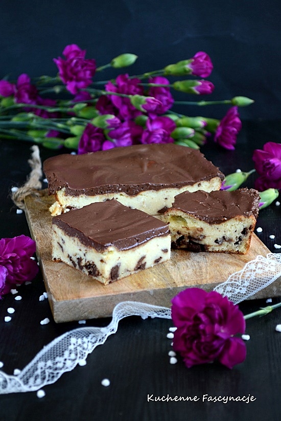 Zdrowe ciasto, które nie tylko będzie idealną opcją na śniadanie jeśli lubicie spożywać je na słodko ale będzie pasowało do każdej innej okazji. W smaku i konsystencji jest pomiędzy sernikiem a brownie. Nie jest puszyste ale bardziej zbite natomiast smak jest najbardziej zbliżony do sernika w moim przypadku budyniowego z nutą wanilii i kawałkami czekolady, która nadaje mu dodatkowego charakteru. Polewę zrobiłam z jogurtu, kakao oraz miodu ale myślę, że najlepiej pasowałaby po prostu z gorzkiej czekolady choć ta opcja też nie jest zła. Przepis z Ona ciągle gotuje.